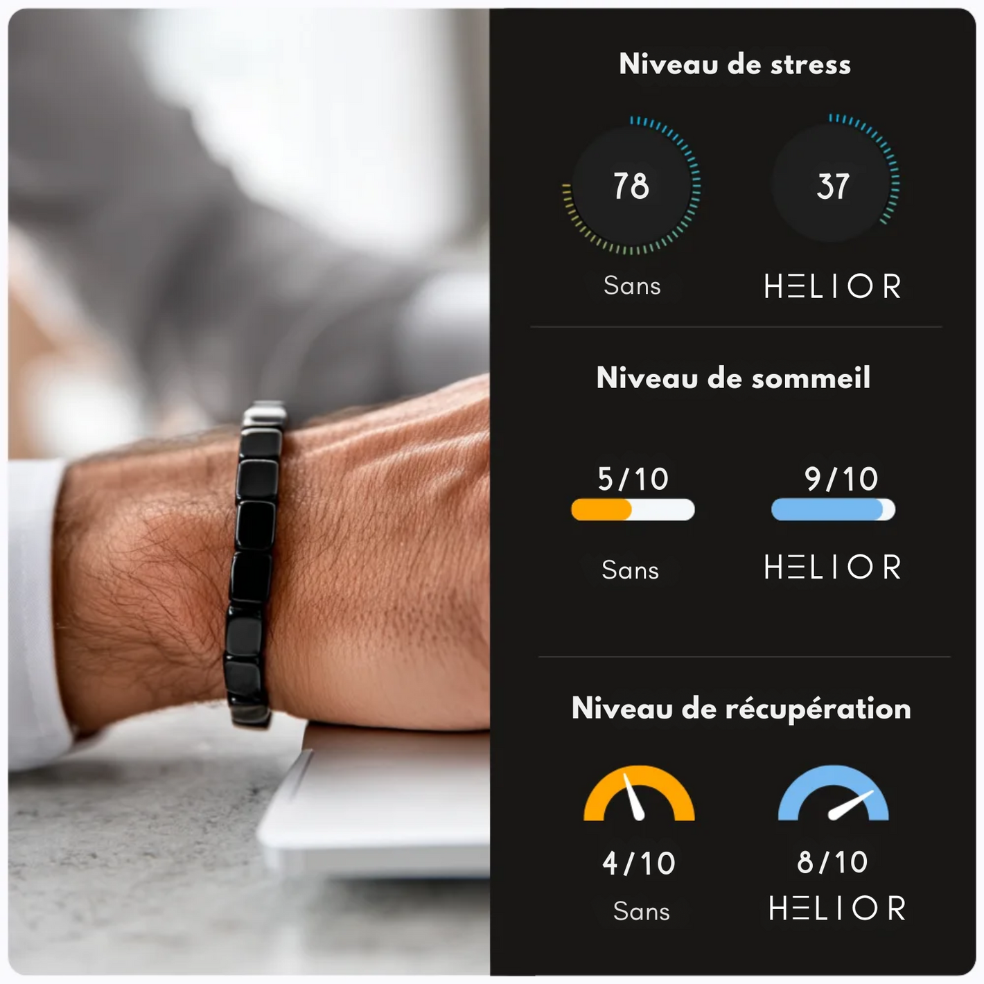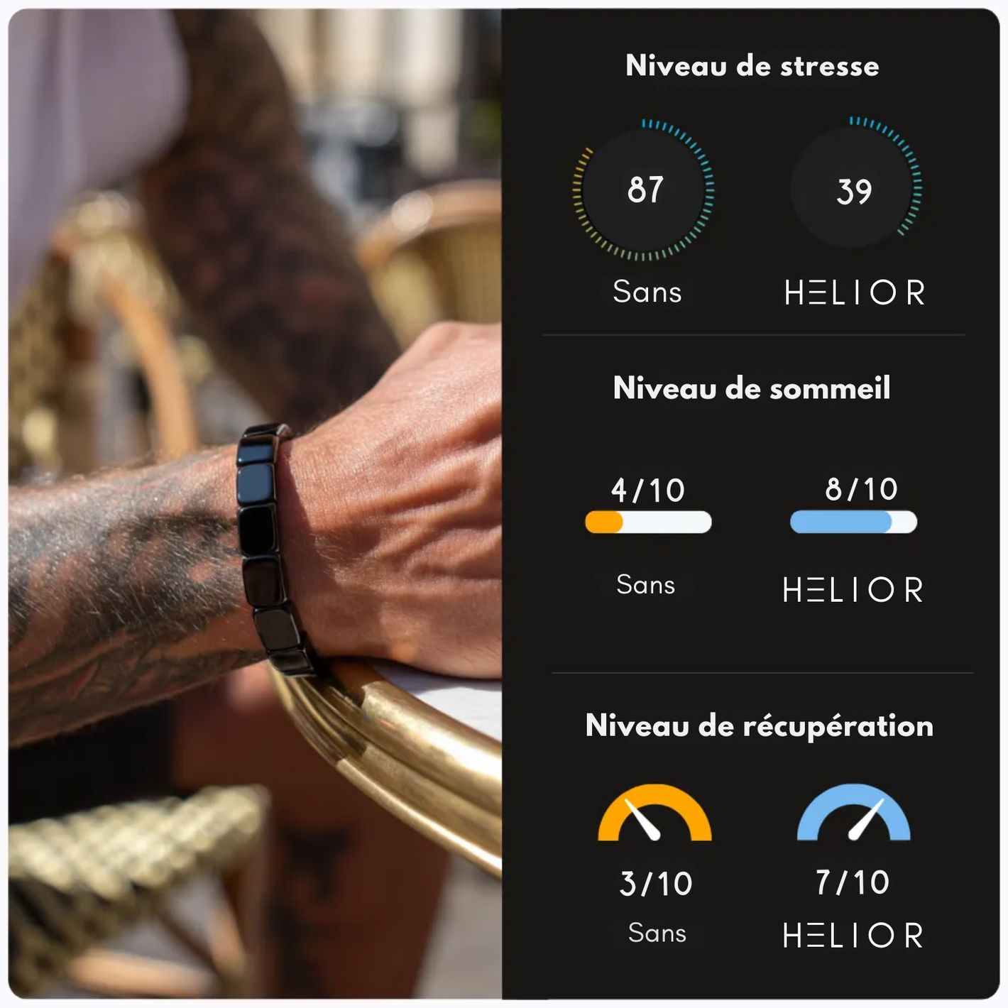 Libère ta force naturelle avec Helior, le premier bracelet masculin conçu en hématite pure pour agir en synergie avec ton champ énergétique. Il booste ton métabolisme, aiguise ta concentration et rallume la puissance primale avec laquelle tu es né.